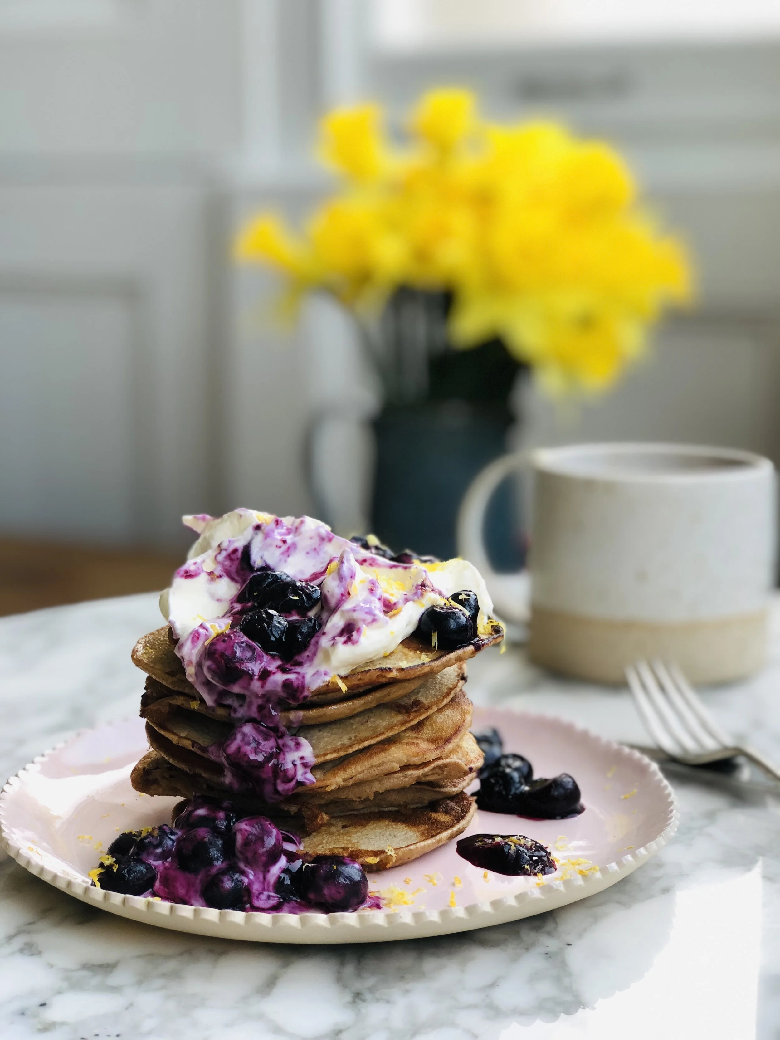 Using porridge oats and ripe bananas and frozen berries, this pancake recipe brings lots of cheer.