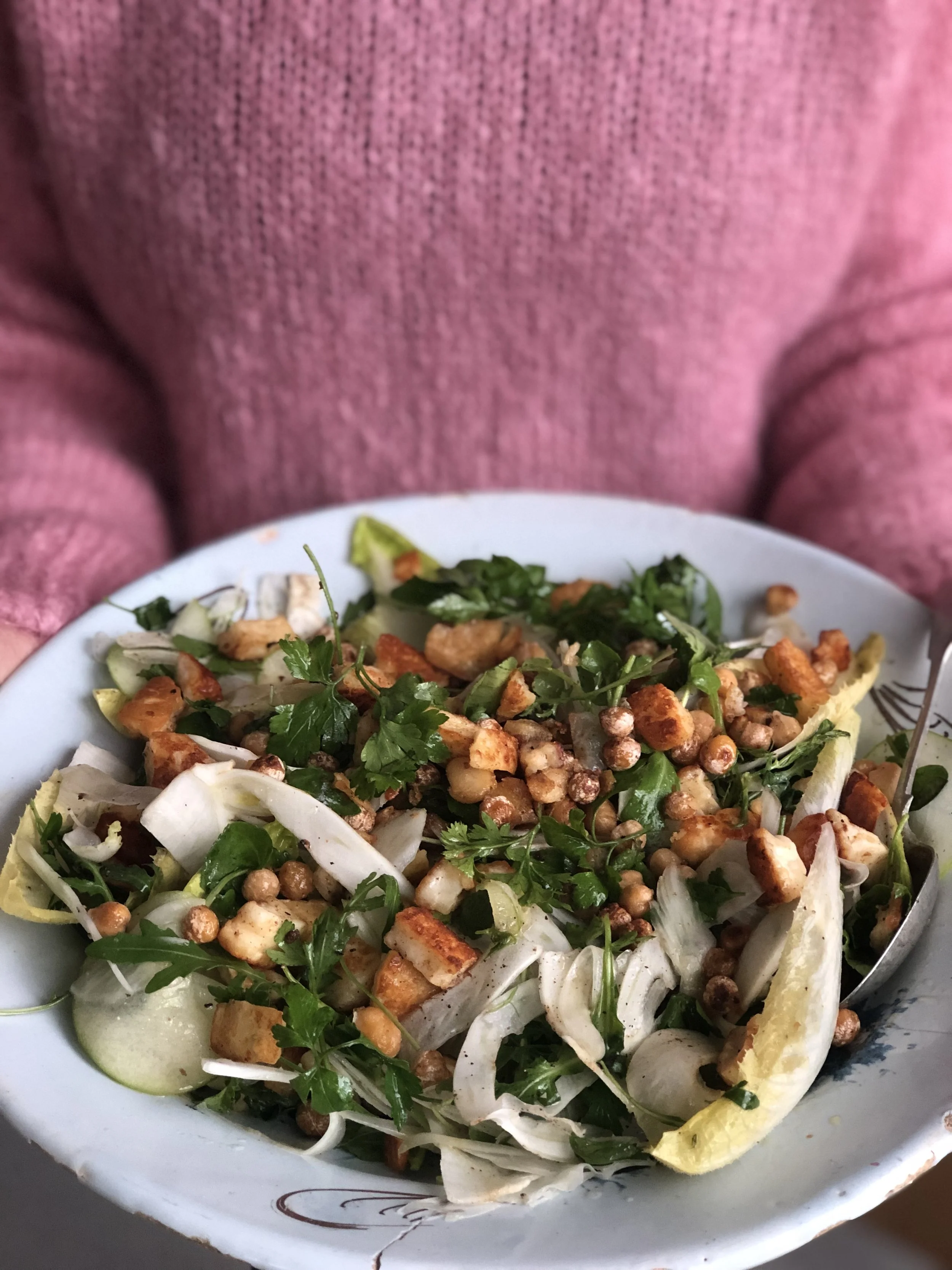 Halloumi keeps very well in the fridge and this is lovely with apples or pears. If you’ve got any apples turning a little brown, then add them in to this to stop them going to waste.